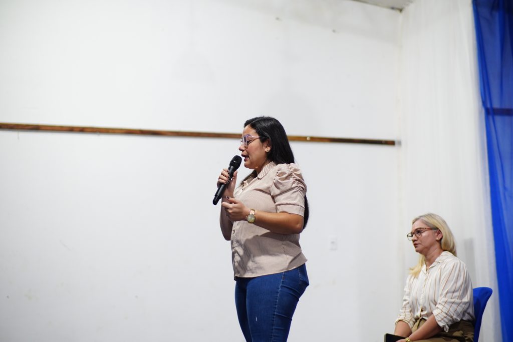 • A professora Luciana Batista da Conceição abriu a programação abordando o papel e as responsabilidades do cuidador no ambiente escolar