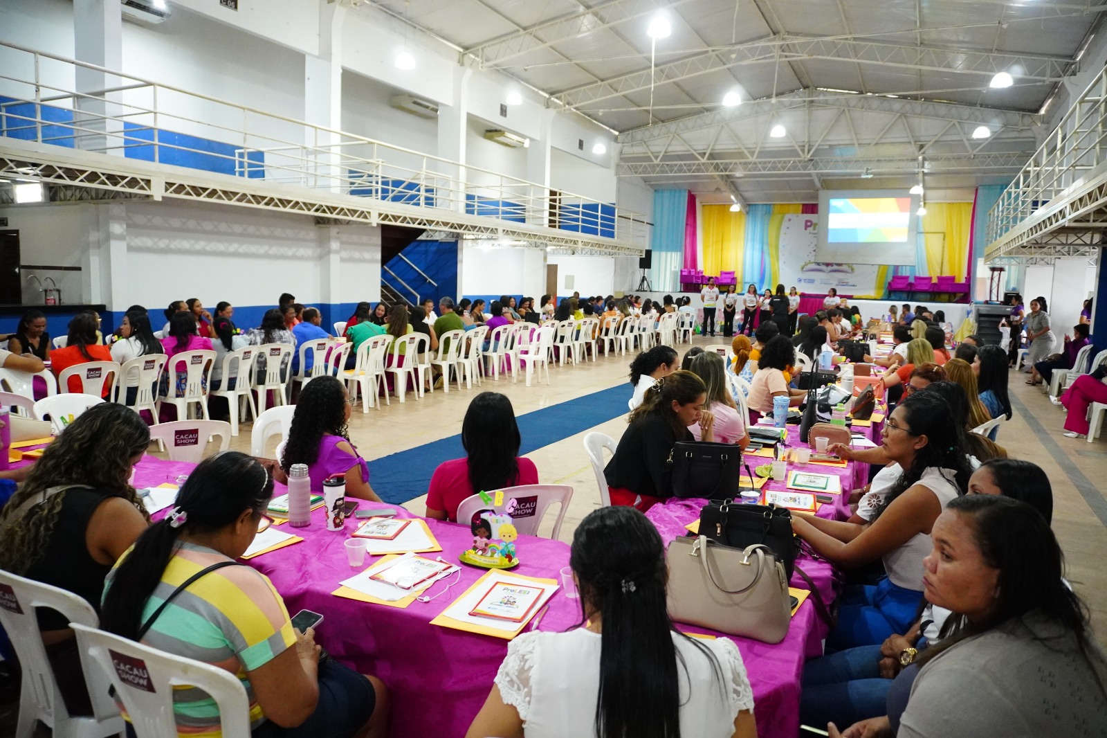 Durante os dois dias de programação, professores da Educação Infantil participaram de atividades que combinaram conteúdo teórico e aplicação prática, com foco direto no cotidiano da sala de aula.